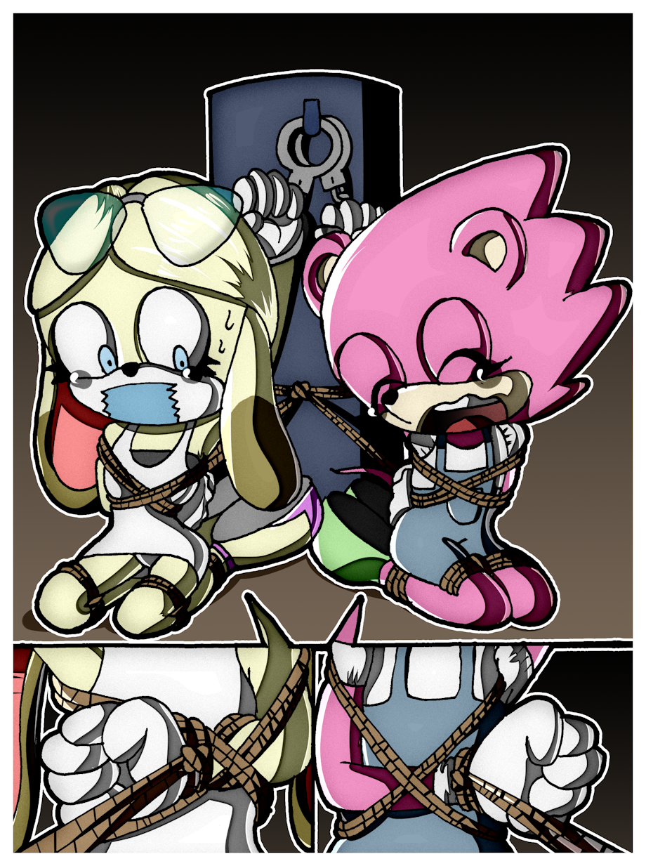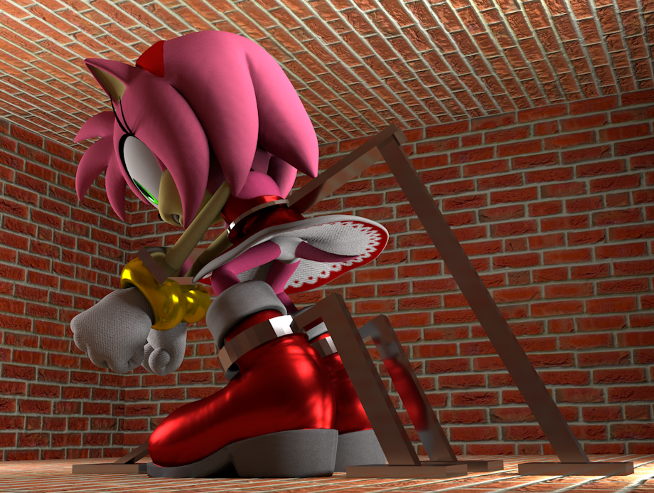Amy was locked in a series of metal bars by Lord Eggman. He knows how to lock securely, but this is way too much.