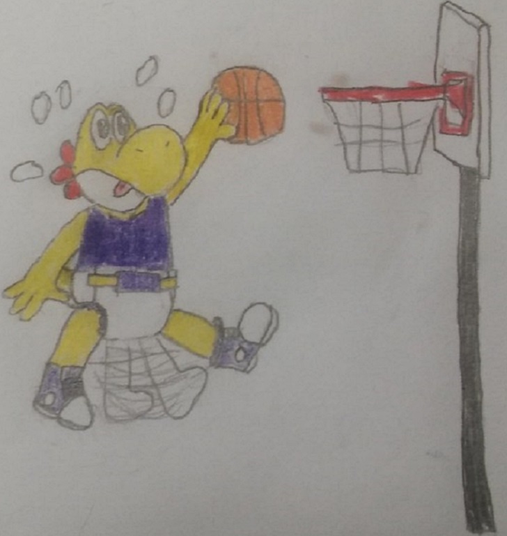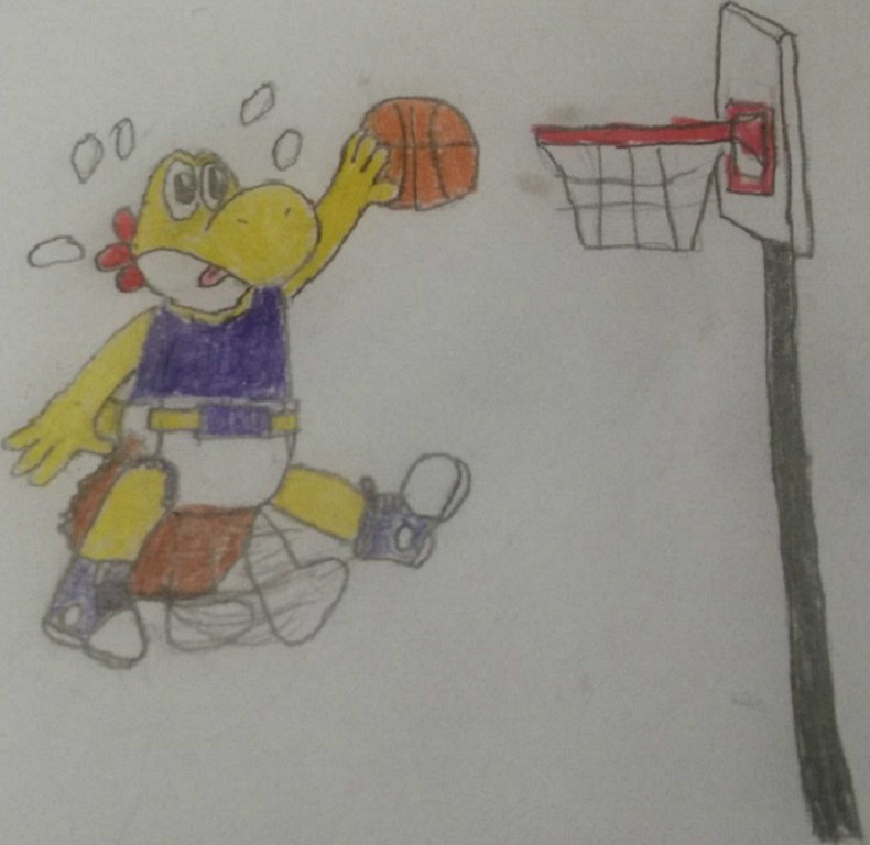 Showtime using a flutter kick to attempt a dunk. It doesn't take much effort for a yoshi to take to the air like that, but it can be a chore if said dinos have excess baggage, so to speak.