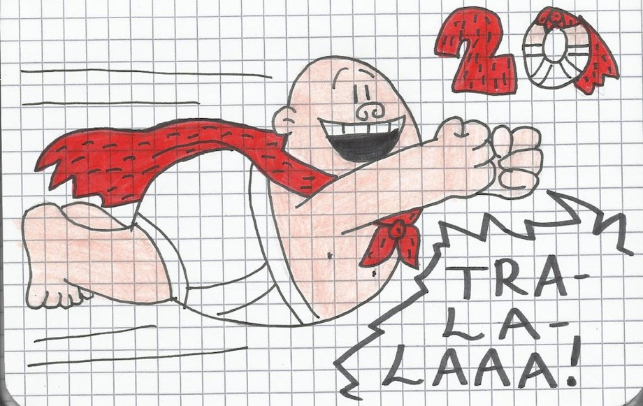 Today is the 20th anniversary of the Captain Underpants books by Dav Pilkey. September 1st 1997. Let's celebrate for the waistband warrior who fought for truth, justice and all that is pre shrunk and cuttony for all these years. Faster than a speeding waistband, more powerful than boxer shorts and able to leap tall buildings without getting a wedgie. Despite those books are new to me since March and April this year.