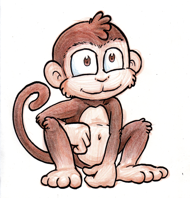 Please enjoy this cheeky lil monkey. He's supposed to have darker fur, but I was using crayons to colour him. Looks too much like Curious George. I dunno.