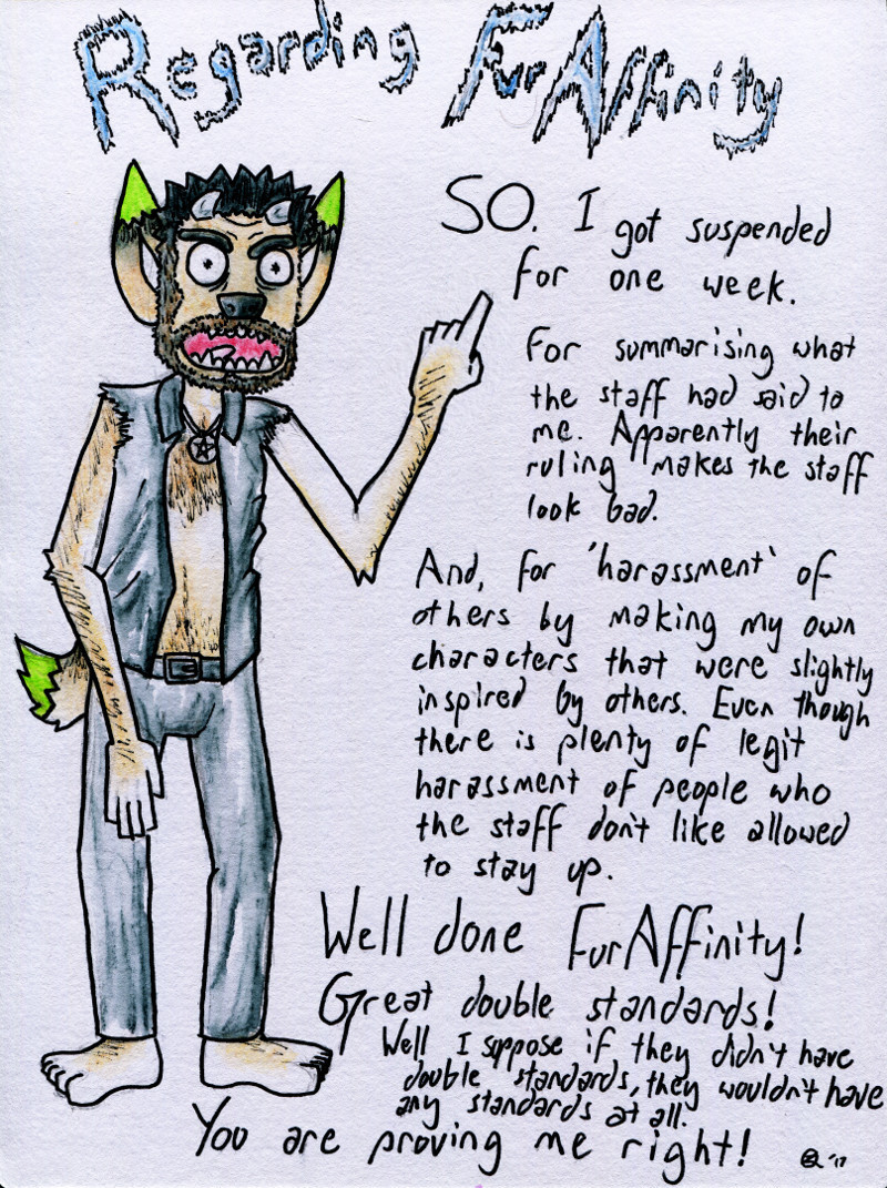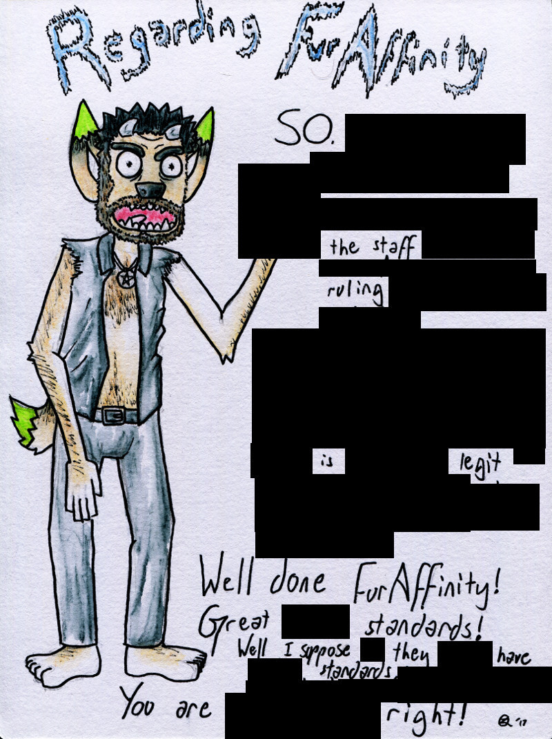 Inspired by my recent suspension from FurAffinity. A short piece about that subject, and some thoughts.