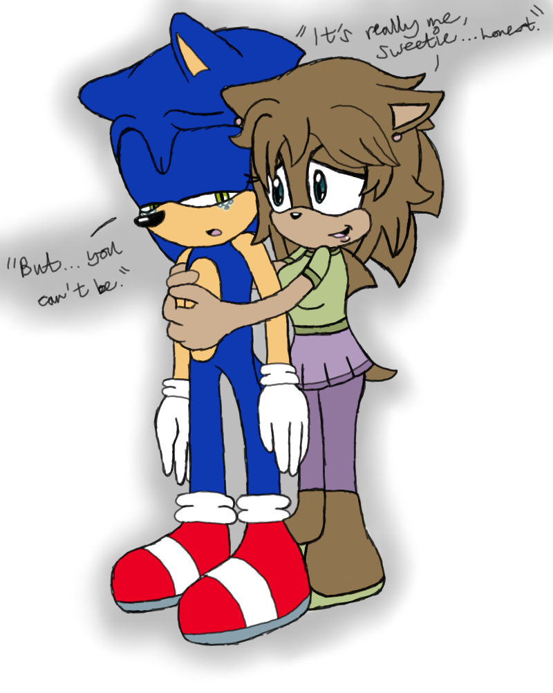 Lilly makes a soft expression and looks into Sonic's eyes, asking him to trust her and saying that it's really her and that Eggman had used his machine on her, which turned her into a mobian. Sonic then begins to tear up, not sure what to believe about the whole ordeal and being so worried about her for so long.