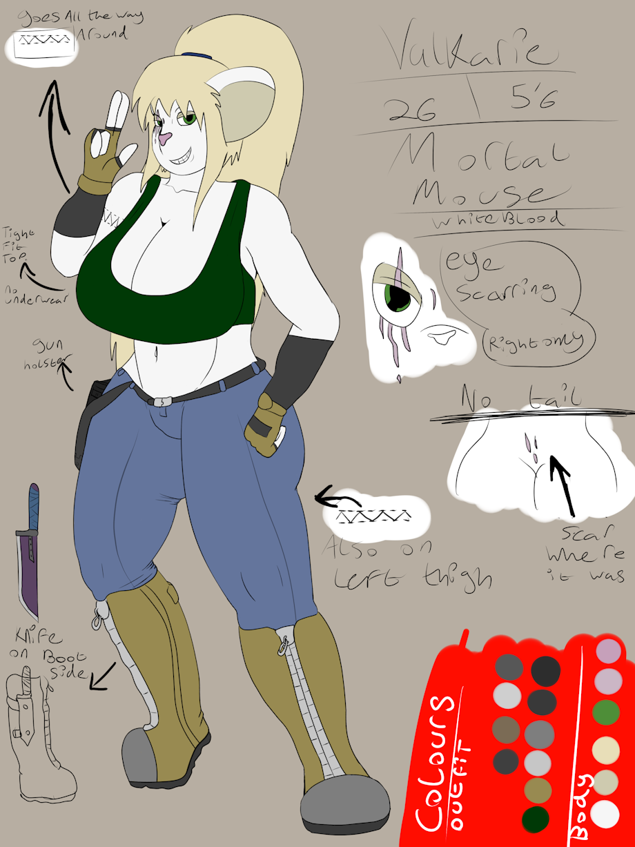 that and i only put the weapons on that you could see by default on her looks. the sniper isn't pictured here so i got too lazy to draw it.