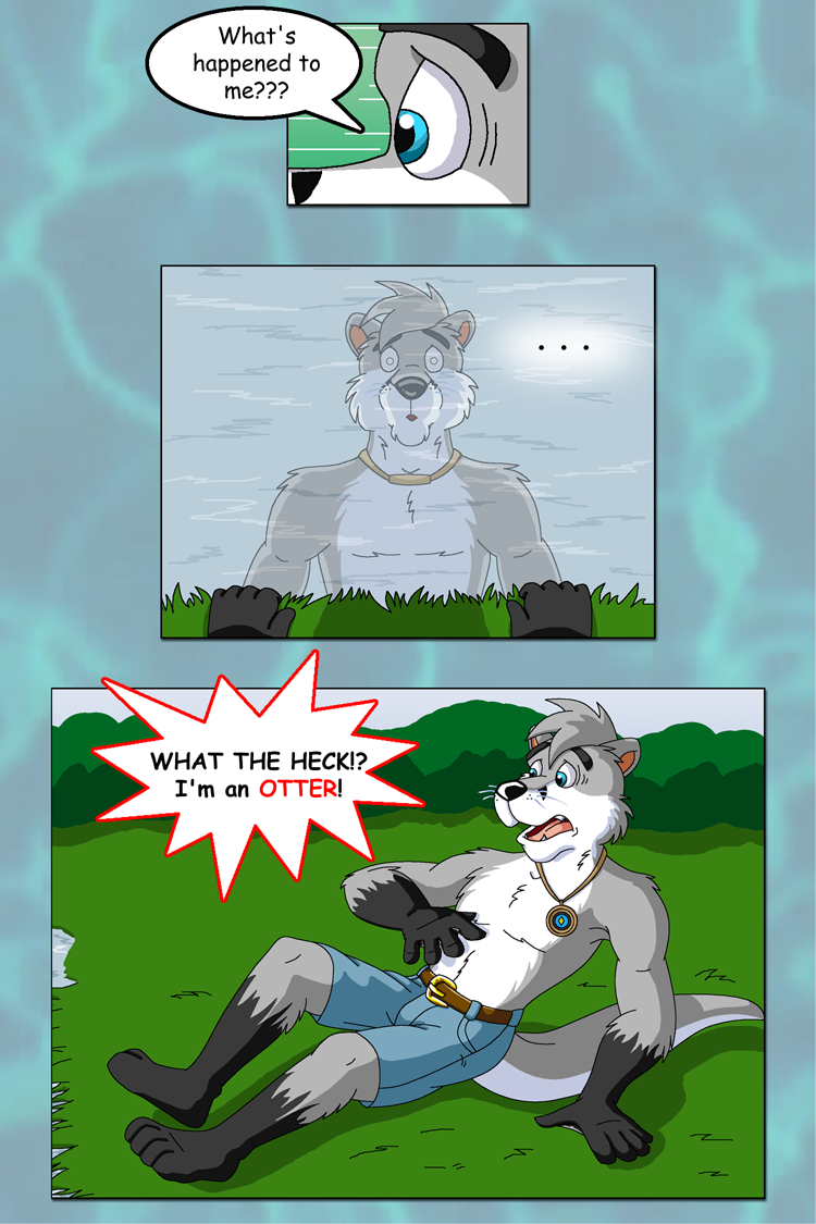 In this last page, Doma whips over to the creek bank and gazes in astonishment over his change. Suffice to say he's a bit shocked... Okay, not a bit shocked. VERY shocked. Gotta love curses, eh?