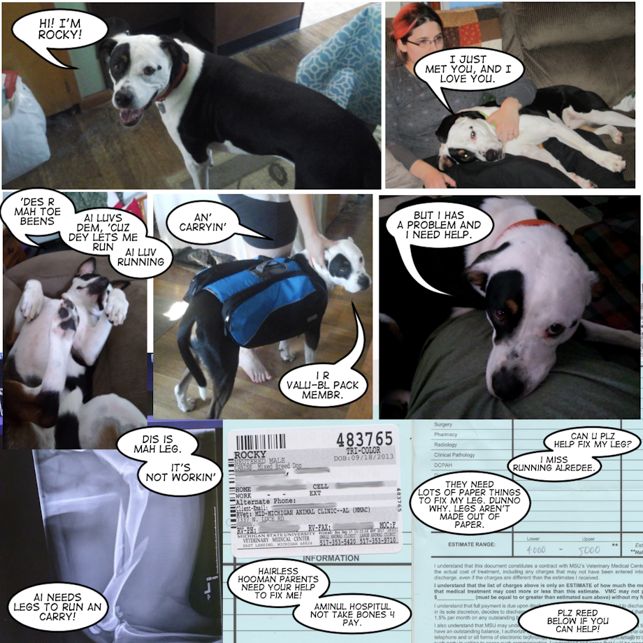 He has a spiral fracture that's going to cost 4 to 5 thousand USD to fix. We don't have this. I'm turning to you generous furries for help. If you can spare anything, no matter how small, at this point, every dollar helps.