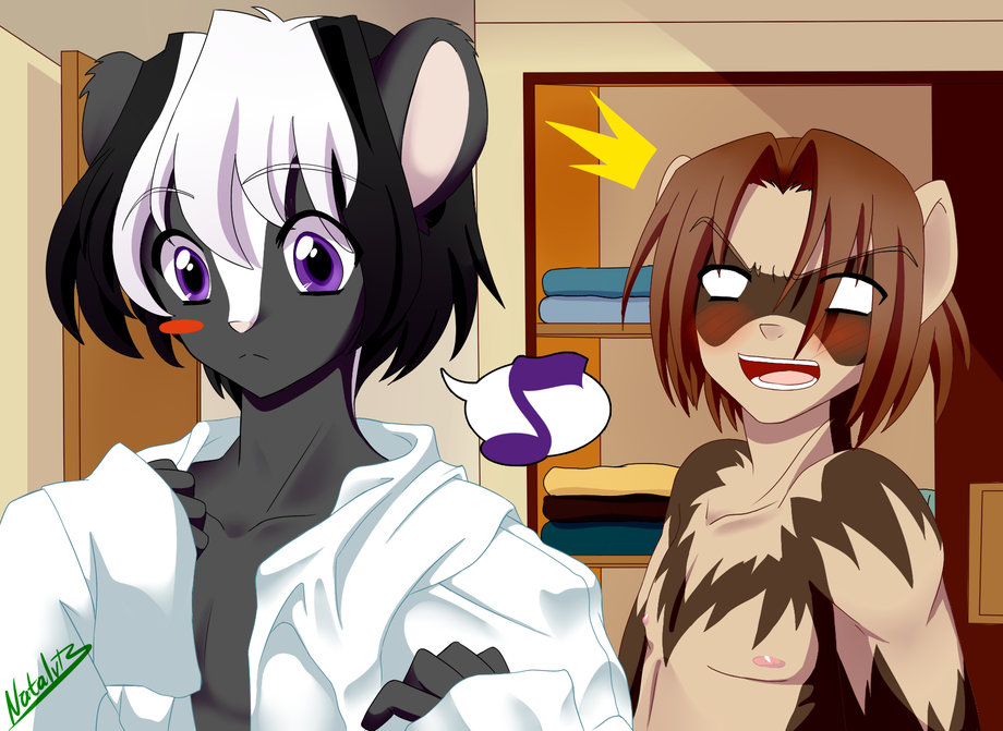 *giggle* Little shirt thief. So cute X3. I really love the coloring :3