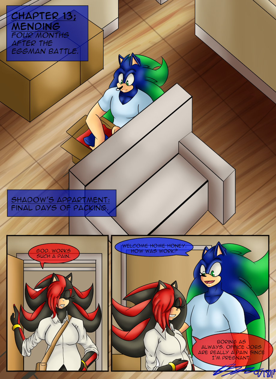 So I asked you guys what I should do for ch. 13 cover and you guys have me some great ideas. But I went with Sonic holding Aleena's hand.