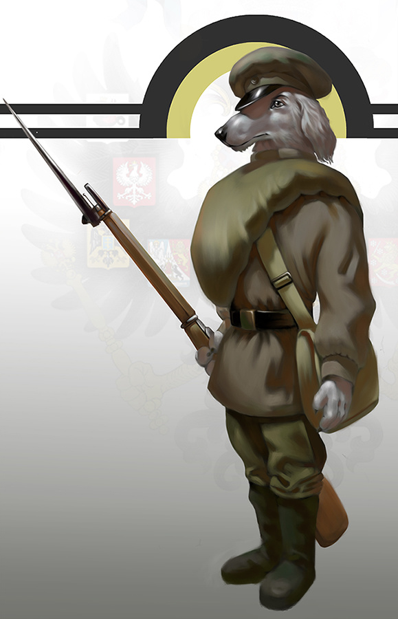 This is a little project I made where I took national breeds of dogs and dressed them up in their respective WW1 uniforms. This is the Borzoi representing the Russian Empire.