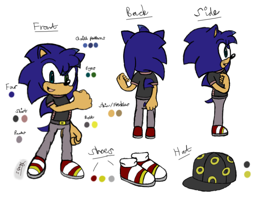 Like Samuel, Miles' shoes were also designed by his Uncle Tails :3 He had always shown great speed as a toddler and as a result, Miles' shoes had to be designed to be tough, due to his hyperactive and cheeky nature!