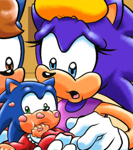 Miss Saccharine was about to go back into her orphanage but soon hears a small crying sound. She gasps and kneels down as she notices little Sonic wrapped in a blanket and crying out for his mother.