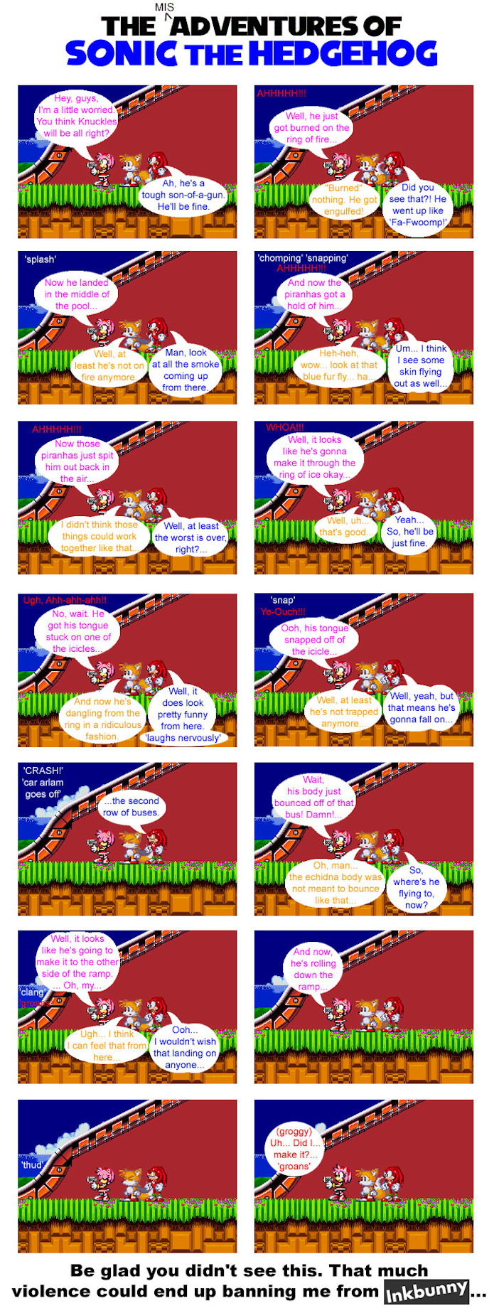 This issue has misdirections like crazy, at least that's what I was intending to do. Once again, I take a jab at Knuckles' intelligence here. Funny that this just happened out of sheer randomness.
