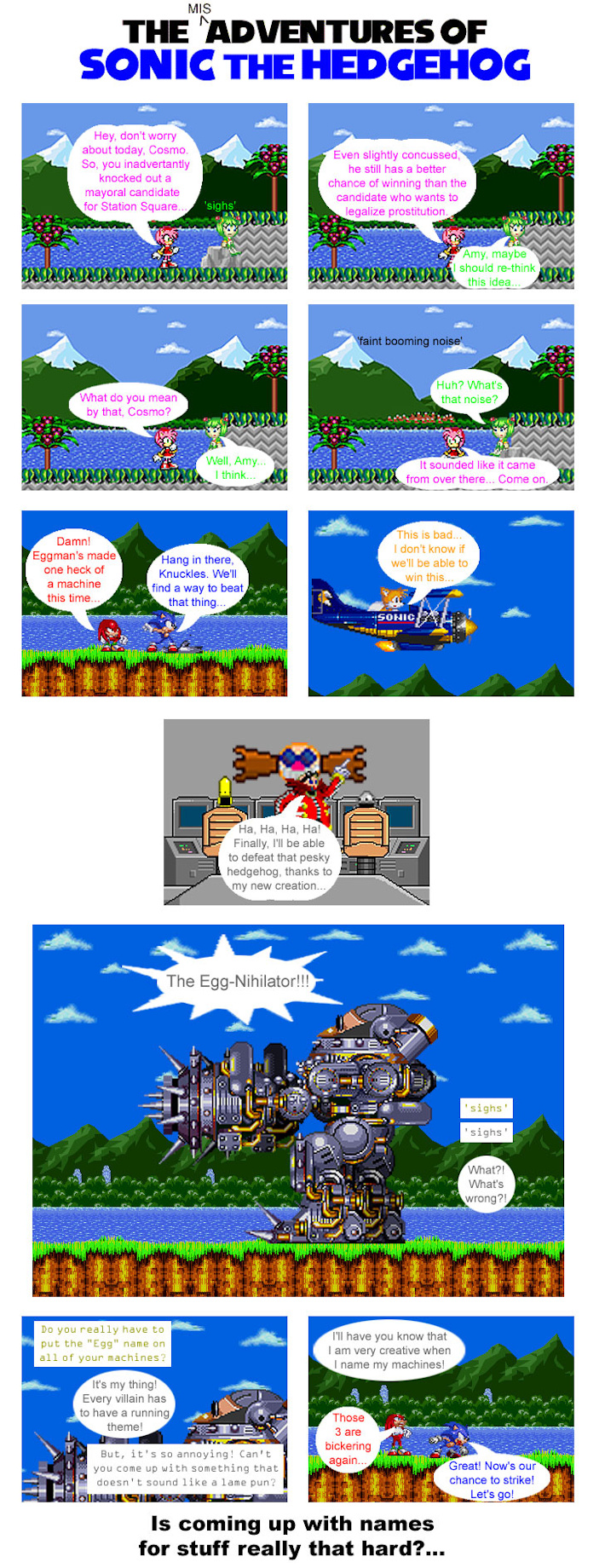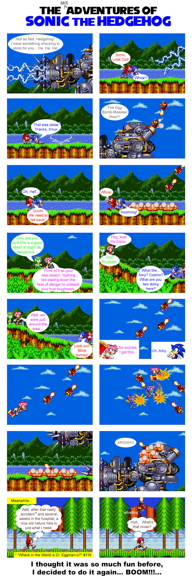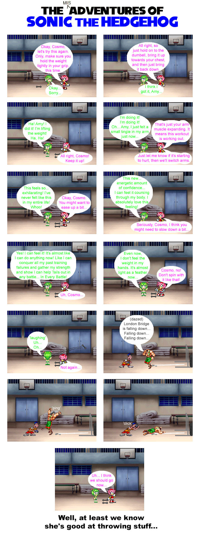 I wanted to use Cosmo more in my comics, but what purpose, since most of the time, the gang is involved in action-type stuff. Then, I remember that one Sonic X episode and I think back to the comic issue when I brought Cosmo back. Thing is, Cosmo is not normally the fighting type... But that's where Amy comes in.