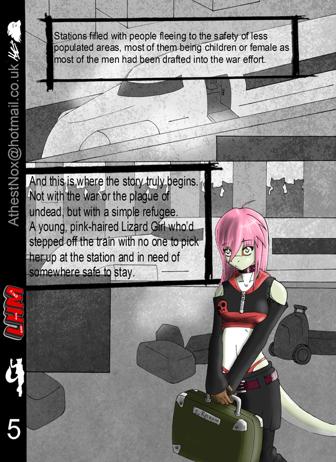The sixth page and the last of the intro pages. From now pages will all be in full colour. Unless I say so of course. Y'know.. Might be like.. memories or flashbacks I've got to draw in. Enjoy