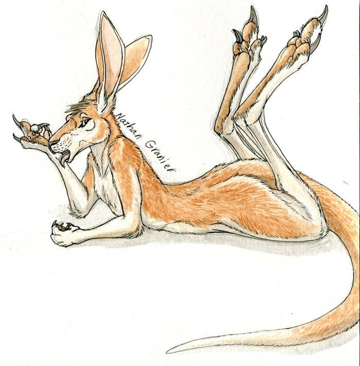 Bats too! Especially important for the darkly-furred species! I'm not aware of cats doing this, which seems odd since they bathe themselves quite a bit when not overheated, hmm... Anyhow, handsome blond 'roo!