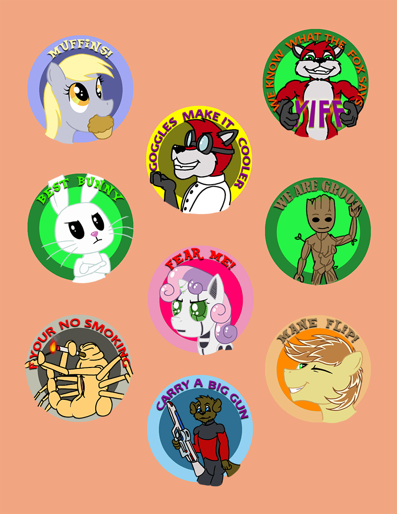Just Wanted to Share....Designs for 2 1/4th inch buttons I will be selling at Fursonacon in Virginia Beach on 12th...so few days left, first time with table at con
