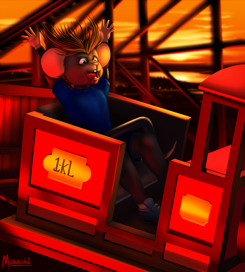 I stepped into the car. The lap bar came down. I held on as tight as my claws would let me, and I shut my eyes as the long train of chatting passengers started to pull from the station. I braced for the worst as we approached the first bend.