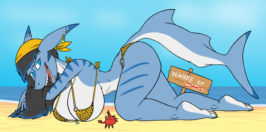 Made a sharkgirl, not sure about her name yet :p She started out grey, but I decided to redo it and use blue as a main colour, I think that worked out better. She may become a recurring character but in that case there might still be some tweaks to her overall design.
