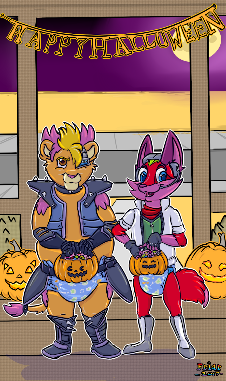 Happy Halloween from Friar and Berry, dressed as Star Wolf and Star Fox!