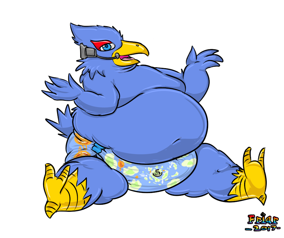 After being sidelined on a routine mission on Corneria, Falco treated himself to some comfort food from the Great Fox's food dispensers. He might have gotten a bit carried away with the comfort part.