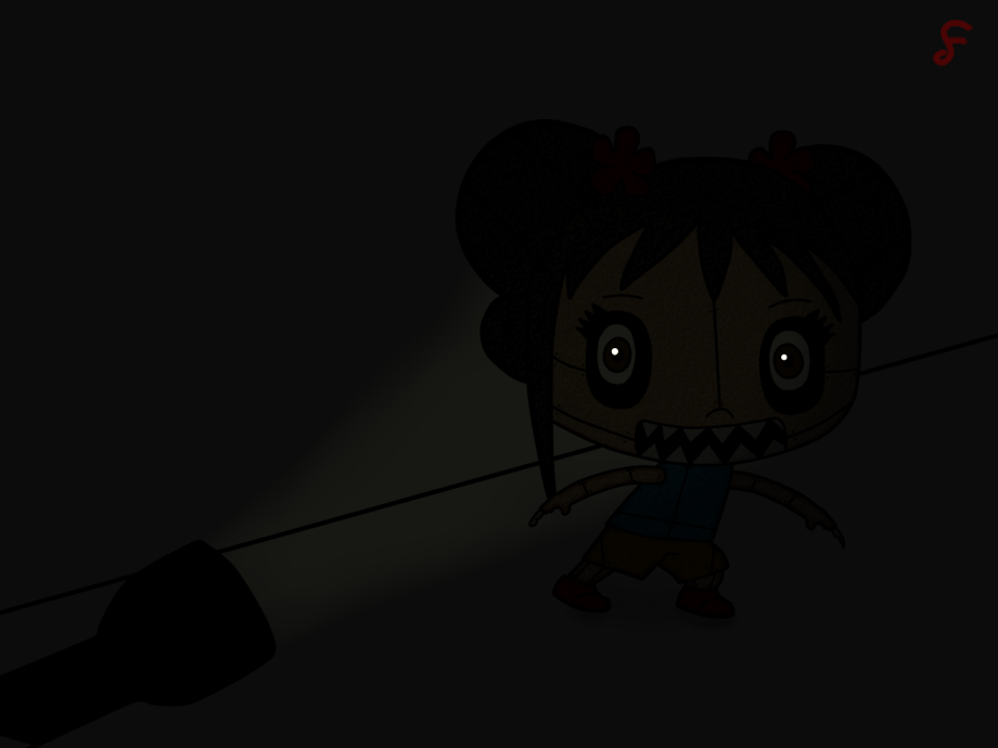 A scared security guard checking the rooms of a Pizzeria when he saw a Animatronic that looked like Kai-Lan