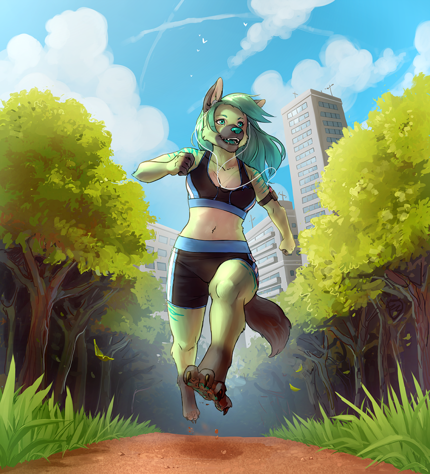 Looks like our resident yena is somewhat enjoying her morning run in the nearby park.