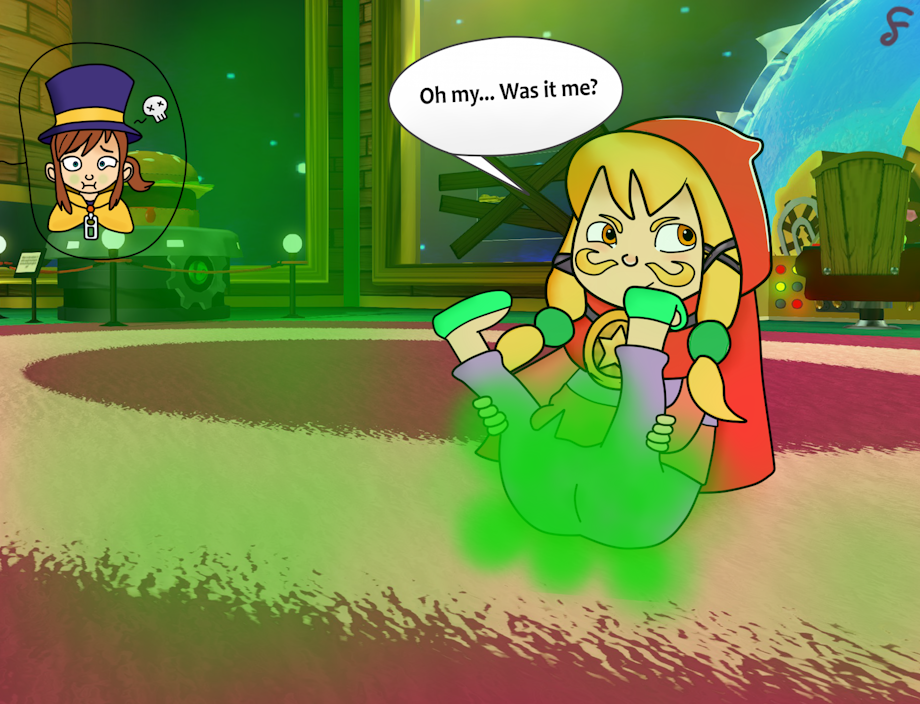 Just Finished A Hat in Time two days ago and heck i loved it! also noticed that i don't see much art of Mustache Girl lately, so i'm here to give some love of her. Blasting a huge one on Hat Kid's Spaceship It seems that the Intruder Alert didn't work when she secretly entered
