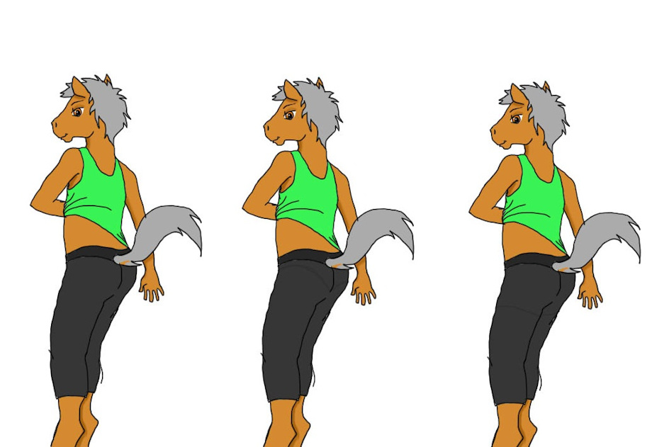 Faint lines indicate the type of undies being worn. Left = none. Center = panties/speedo? Right = bo