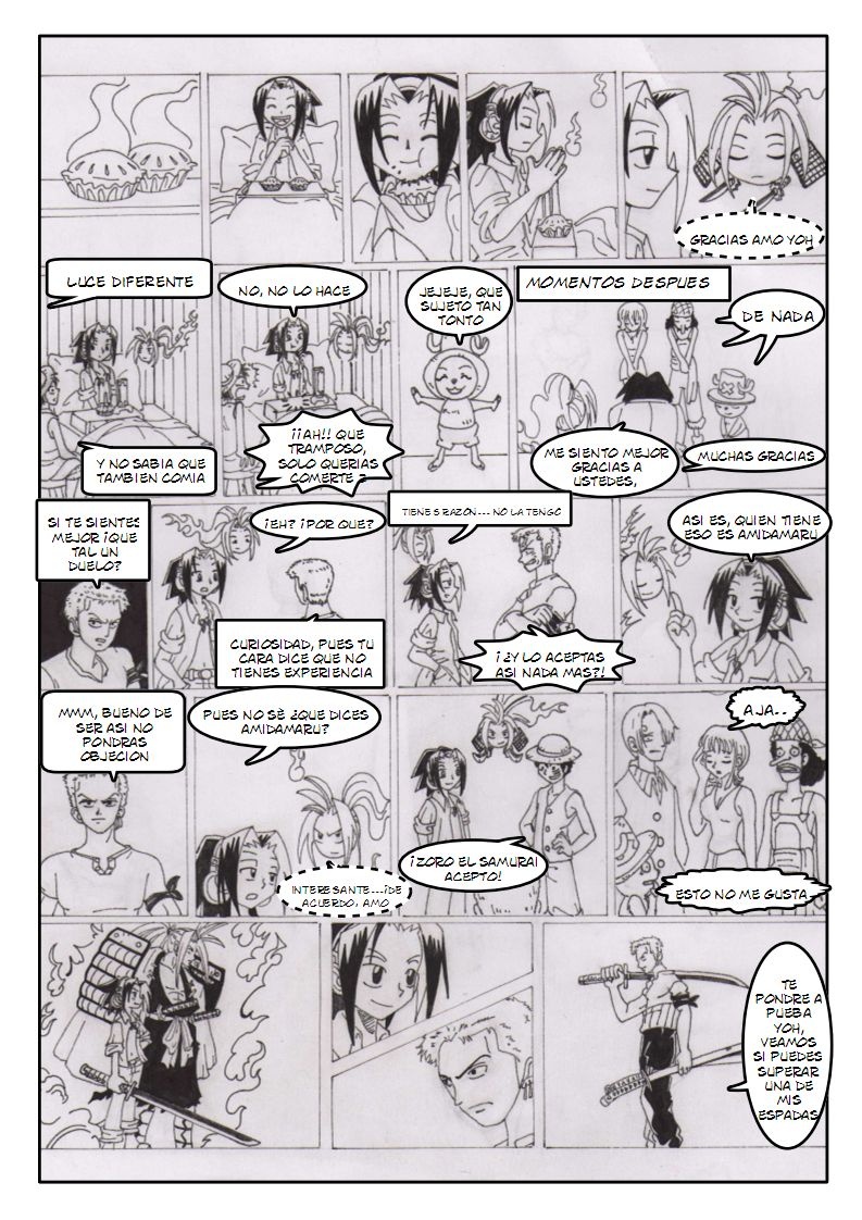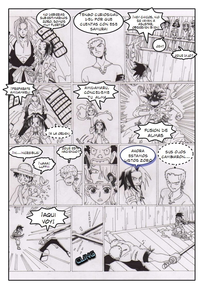 Uff, pues quise superarme a mi misma y creo que por poco lo logro jejeje, aqui la continuacion en donde me esmere, en el principio del duelo de Yoh y Zoro (tambien Amidamaru). Puse mas personajes por cuadro y quise darle el mayor detalle posible, lo unico malo es que a la hora de poner el dialogo tuve que sacrificar parte del dibujo... debo calcular mejor eso je, pues disfrutenlo.