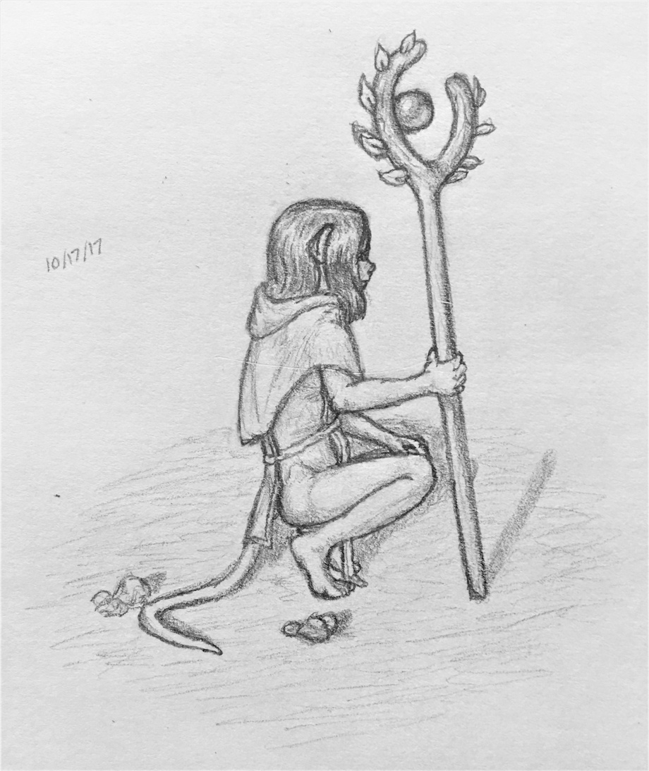 Ahh, I drew this while at work, so I didn't use a reference for the staff, and I forgot how it's twisted before the split! Also it's thinner than I drew it.