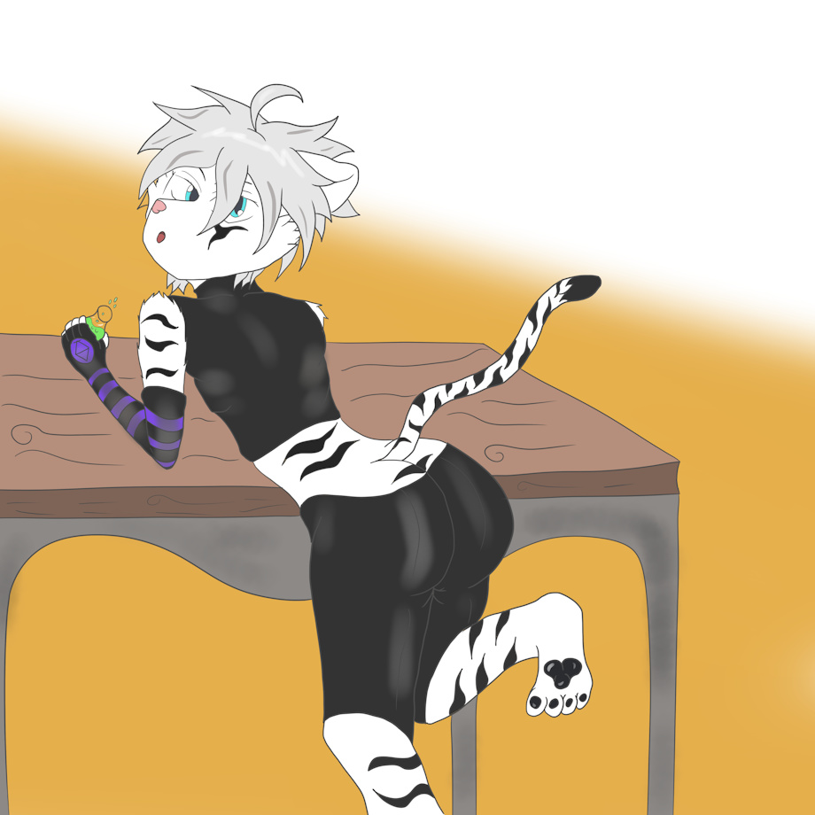 So finally posting to this place again, getting good so I feel confident enough to post some work. This here is yo boy Dante, and apparently while he was mixing up some potions someone had headed inside. Atleast they got a great view out of it :3