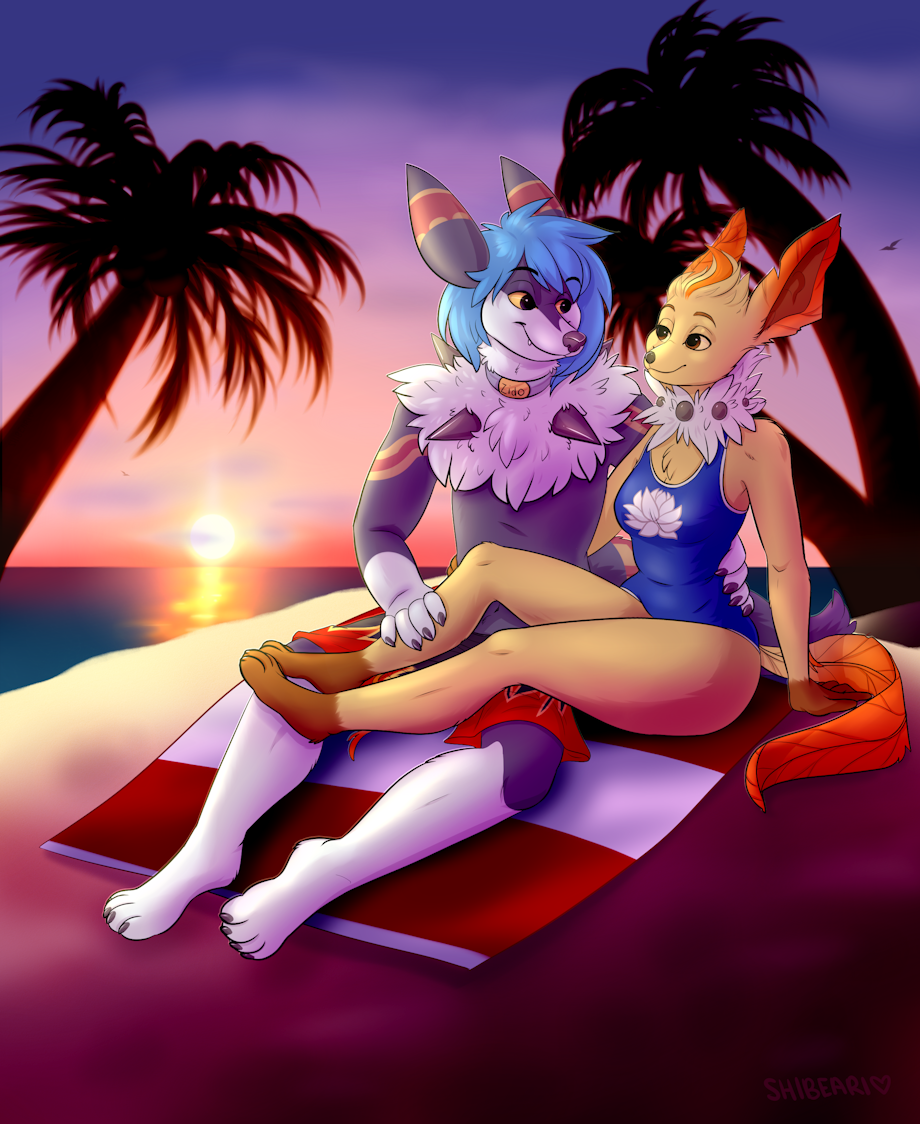 This is myself and my girlfriend, Lotus, who happens to be a Leafeon-Rockruff hybrid. She typically wears anything related to Eastern Country culture, more often dressed in kimonos and 'schoolgirl outfits'; she was more than happy enough to settle into a sukumizu for the photo op, though~.