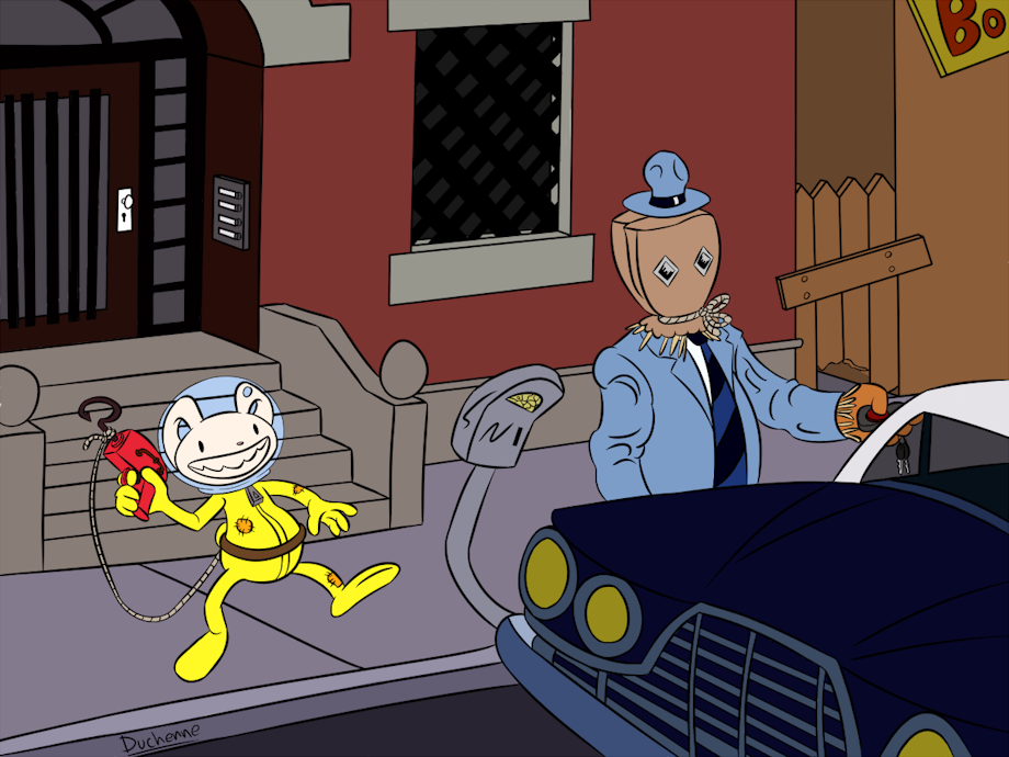 Good thing Sam still has his penny-conscious spacesuit from their trip to the moon. Max even found some spiffy knock-off spacesuit too.