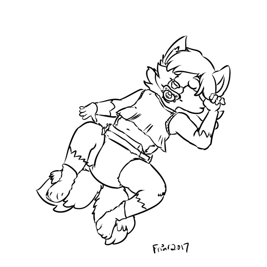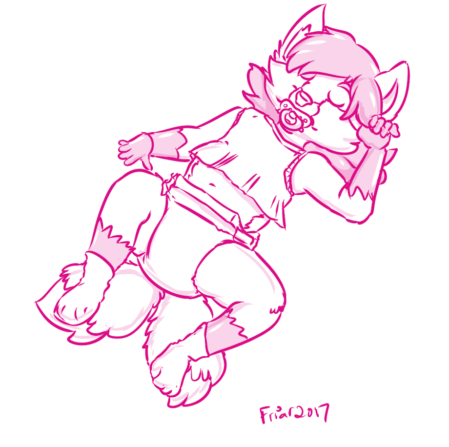 Ozzy Fox enjoying another nap. He seems to get better sleep when he's all prettied up. In his muzzle is a Fruit Dipe flavored pacifier - berry flavour being his favorite.
