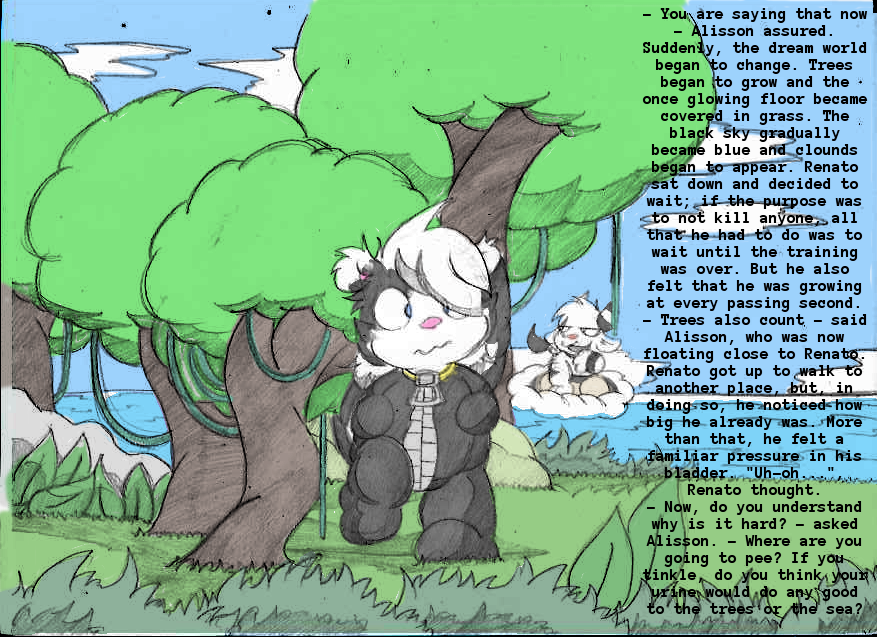 I actually wanted to make him crap in a bush, but... the pressure for a second messing made a biger plea, specially on FA. uwu But don't worry. Tomorrow, I'll start Soy Milk. It's cub porn, so...
