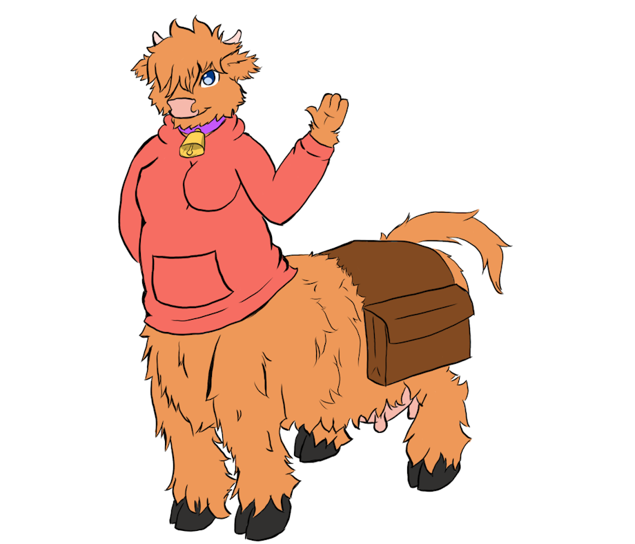 My Scottish highland cowtaur. Made her a bit younger, now setting in her late teens, and need a new name for her.