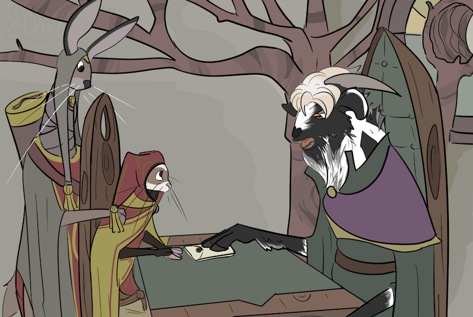 “Some decrepit old guy. All beardy and wise, yer know. Not a cute little thing like yourself.” Ugh, please don’t. “Are you sure you’re a scholar.”