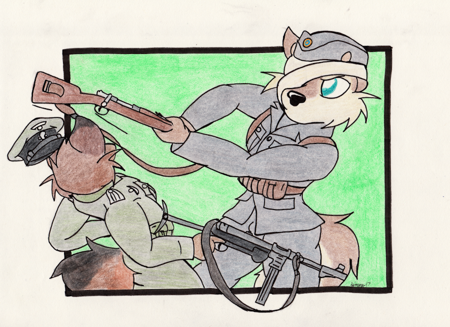 Great picture, it's also nice to see an anthropomorphic donkey. I take it he's carrying an 03 Springfield?