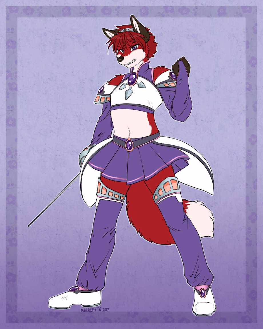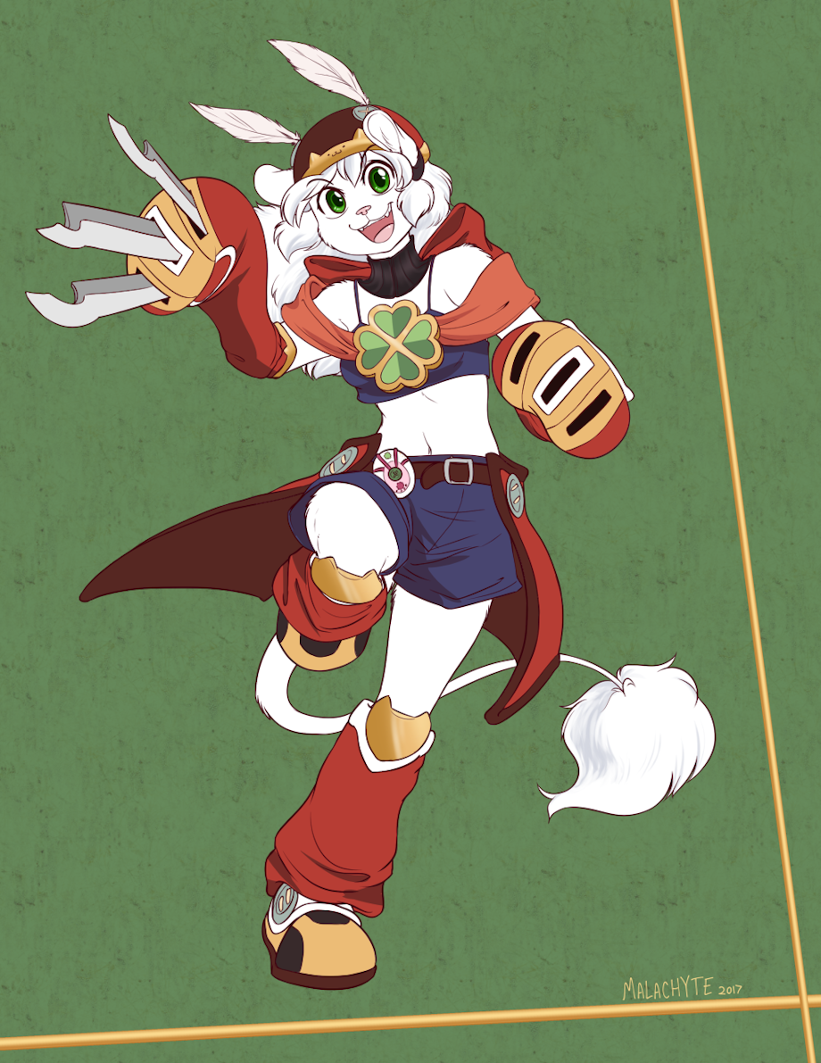 Another August commission. I was given free reign for her outfit, so I went for a little known favourite of mine, Otogi Juushi Akazukin (Fairy Musketeer Little Red Riding Hood). Seriously, the outfits in this show are amazing. I merged it with Taokaka's sleeves to give Leona some claw weapons though, to fit being a lion a bit more.