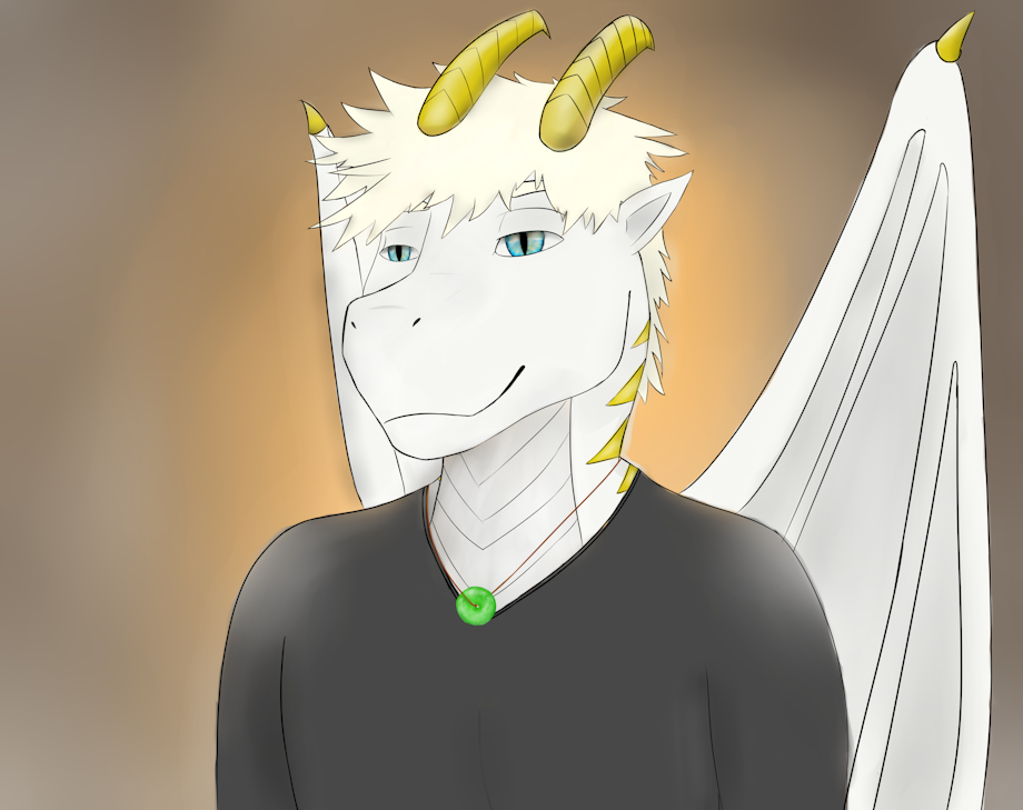 New Drawing of the new desing i did to my sona Drakkén, From Red and black now is White and gold.