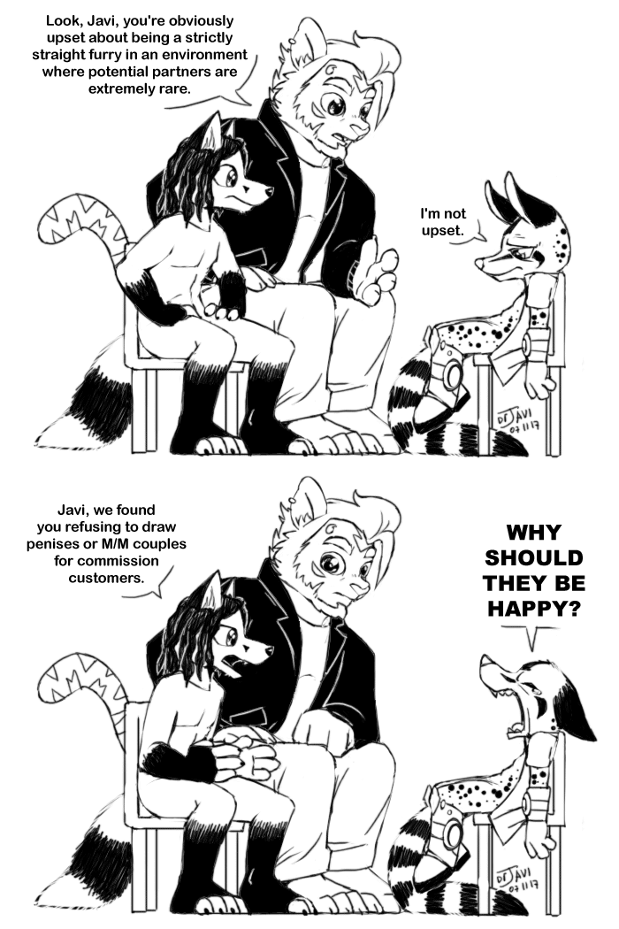 | If you don't want to draw it because you can't jerk off to it that's different from not wanting to draw it because seeing gay couples who are happy annoys you. |