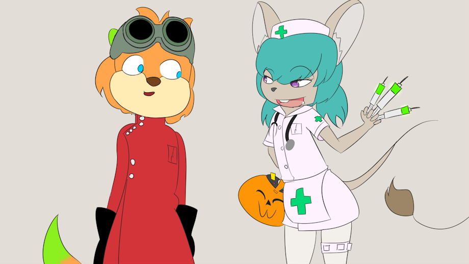 A happy and late happy Halloween, She's after his Nuts.... candy. :3