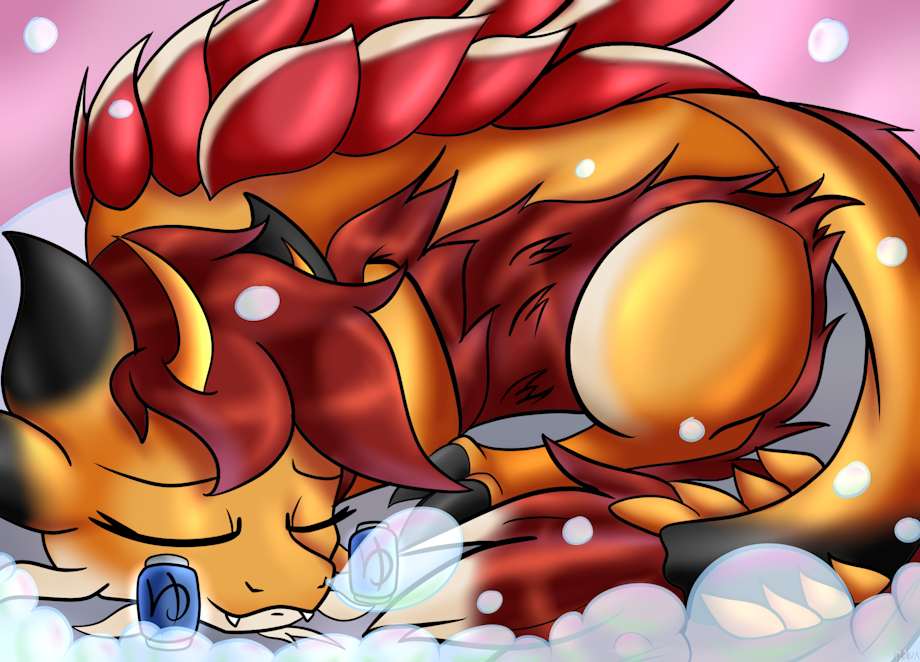 Ginger had been transformed into a Mizustune and Nova made the decision to use her as a living bathhouse. Bringing the zebra, Nia and the bat pony, Lupine along as well.