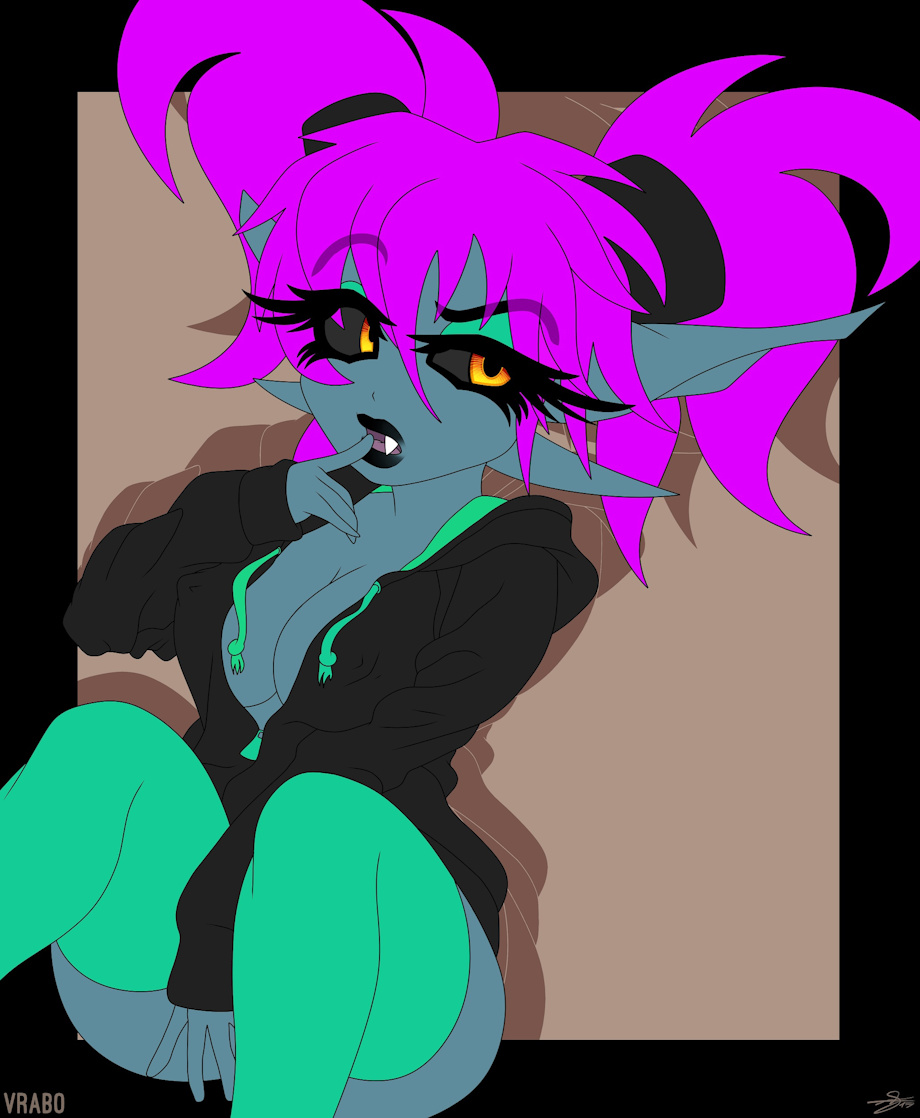 Yep. I'm going with the idea that she has nipples now so she might as well dress. I like the idea of her clothes matching her makeup. :3