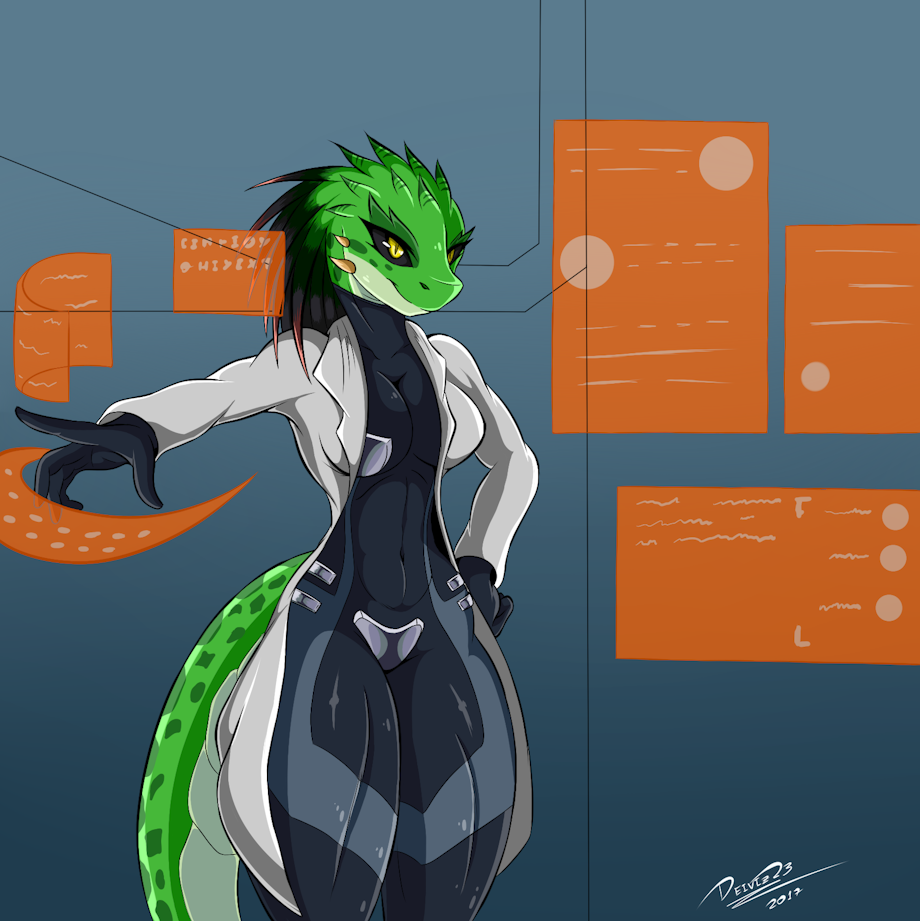 Anyways this was another commission requested by this lovelly mofo kitten https://assaultcat.deviantart.com/ featuring another of her OCs some sort of... ehh.. lizard lady that loves scientest stuff (i still dont know her name).