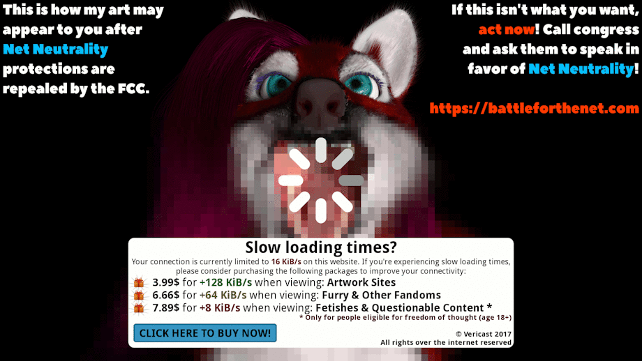 This is a quick preview of how my drawn art, renders and animations are going to appear on your computer from now on. That is if the FCC gets its way and Net Neutrality protections are repealed.