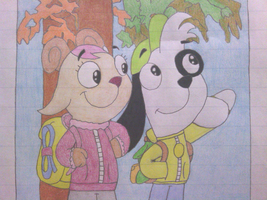 Well, here is a new drawing! Im FINALLY starting to get somewhat back into business in drawing!! God all mighty it's about time lol. I can't say Im completely back, but Im getting there :) So a few weeks ago, I got into a cartoon show called "Doki". And Doki became one of my ALL TIME favorite characters.... :) Seriously, he's such a cute character! And so Ive been learning about the characters, the show, and other info. And when I first saw Gabi and Doki together, I immediately thought to myself: One true pairing...... Now, that's just what I think. There might be others who know about this show, and ship Gabi with someone else. But, like I ship Nutsy with Shifty Dingo, I ship Gabi with Doki. So ANYWAY, back to the drawing: So, I pretty much made this drawing as a Autumn themed couple moment. And yes, this is MY FIRST TIME drawing Doki and Gabi! So for a first time, I think I did pretty well :) The background I don't think looks the best considering the reference pic I used. So, I kinda did the little "Frame" effect to the drawing. And I am NOT that good at drawing leaves ^^; So, bare with me lol. But then again, that could just be me, and the drawing probably is perfectly fine lol. What do you think?? Hope you like it and thank you for viewing! :) I'll hopefully be drawing more frequently soon!!