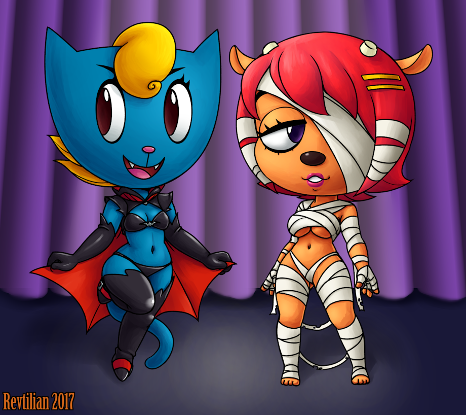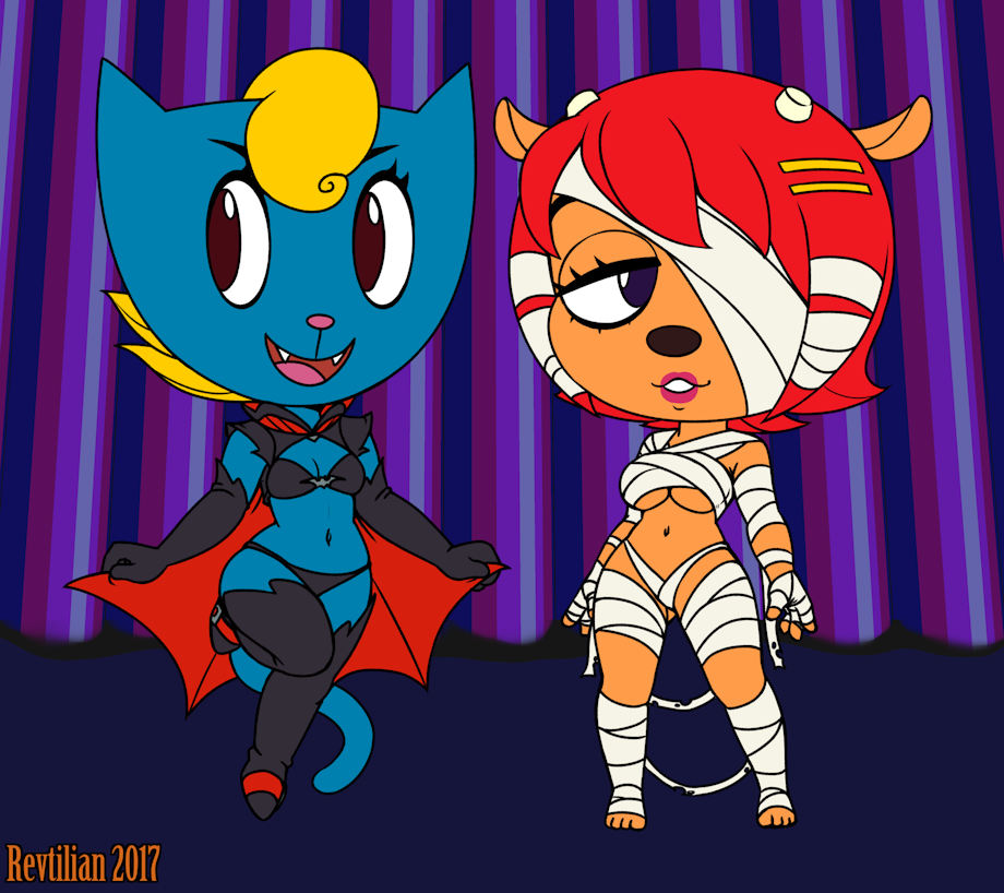 Some Halloween costumes for Katy and Lammy. Art by