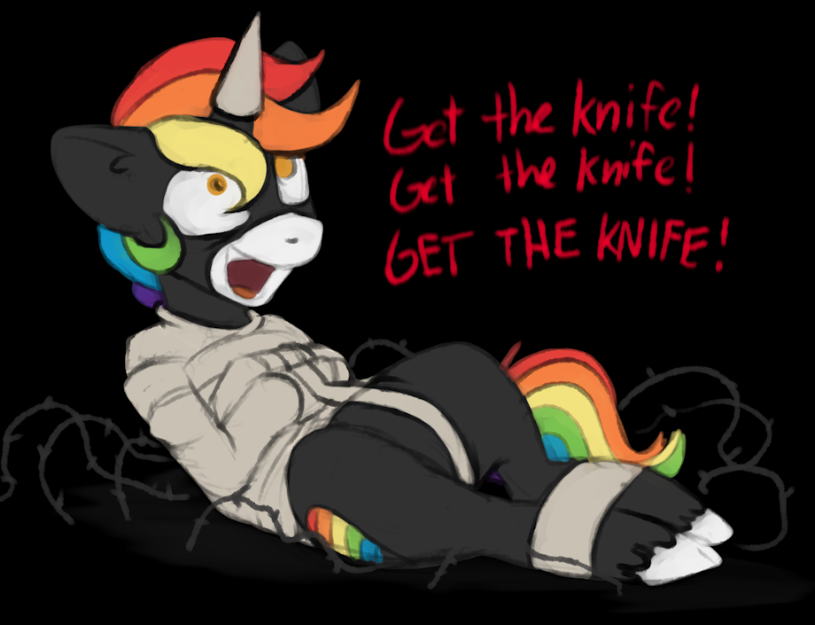 I understand why he's in a straitjacket. He missed out on the first rule and repeated the second twi