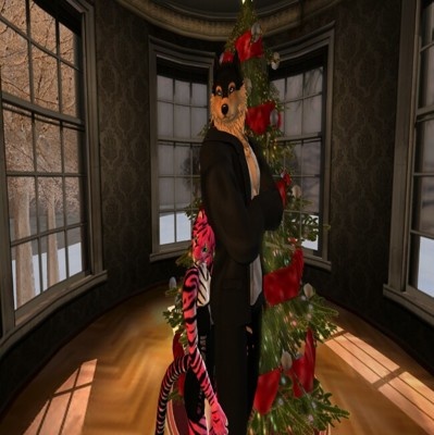 it took 6 months but shadow is now from the paper art to the second life pictures. and we thought a wonderful picture to  celebrate the Christmas season as we pose both me and Lily for Christmas right in front of our tree. And you can finally see my completed fursona on econd Life next to hers so we all wish you a very merry season as we count down the days to Christmas.
