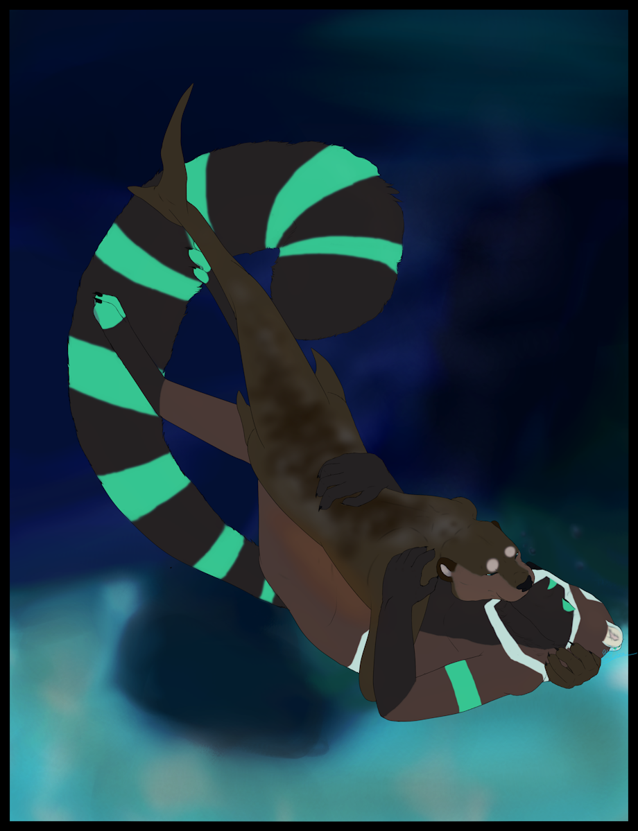 Kinsley the mermotter belongs to @ Nova-Sabertooth on deviantart. August the coatimundi is mine. Art is by /me/
